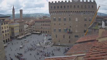 Florence, view of Ponte Vecchio, Lungarno, the Cathedral and Palazzo Vecchio